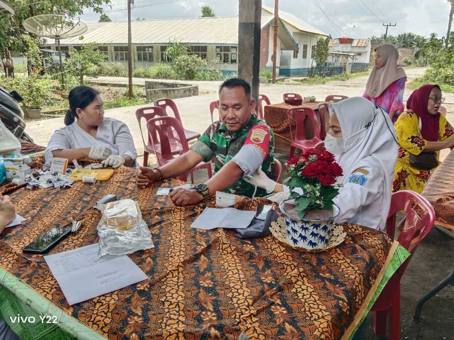 Babinsa Peltu Muhammad Hakim saat melakukan cek kesehatan, Senin (23/02/2026)
