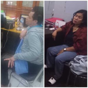 Feri Banjarnahor alias Feri Marbun (kiri), dan seorang wanita menjadi tersangka kasus penipuan calo CASIS Bintara Polri yang berhasil diungkap Timsus Irwasda Polda Sumut (Istimewa)