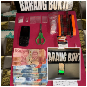Barang bukti berupa sabu seberat 1,28 gram bruto, uang tunai, serta sejumlah alat yang berkaitan dengan penyalahgunaan narkotika