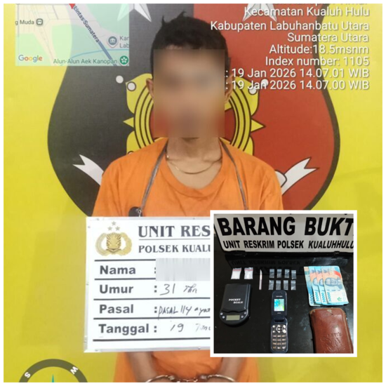AKARRUMPUT.COM, Labura – Jejak lama kembali terulang. Seorang pria berinisial R (31), yang pernah tersandung kasus narkotika, kembali diamankan aparat Polsek Kualuh Hulu. Kali ini, R diciduk saat diduga hendak bertransaksi sabu di Dusun VII Desa Damuli Pekan, Kecamatan Kualuh Selatan, Senin (19/01/2026).