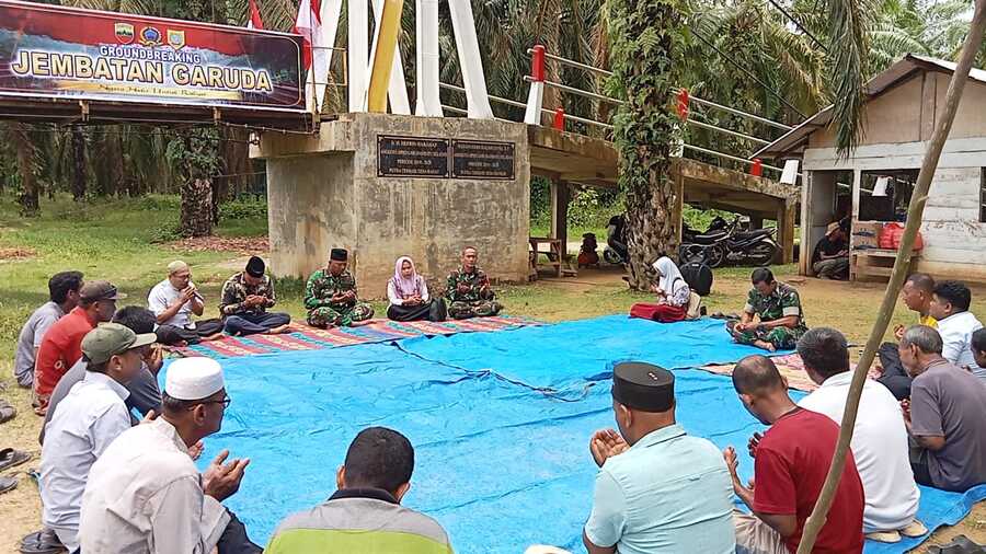 AKARRUMPUT.COM, Labusel – Upaya memperkuat pembangunan desa terus didorong melalui kolaborasi antara TNI dan masyarakat. Hal ini terlihat saat Koramil 11/KP menghadiri doa bersama dan syukuran pembangunan Jembatan Garuda di Desa Rasau, Kecamatan Torgamba, Senin (01/04/2026).