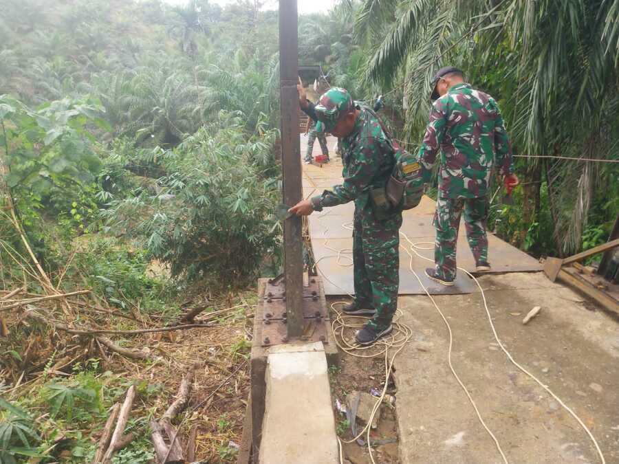 Kegiatan finishing dipimpin langsung oleh Danramil 12/LP Mahyudin Siregar bersama sembilan personel. Mereka memastikan konstruksi rangka, lantai jembatan, serta pengaman sisi kanan-kiri sudah kuat sebelum digunakan masyarakat.