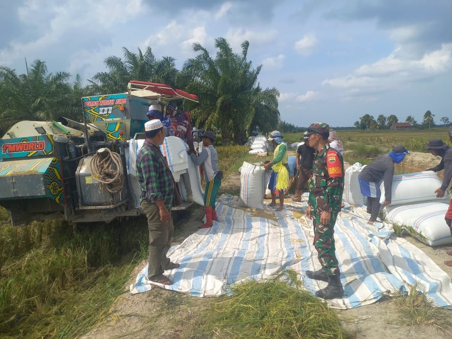 Pendampingan dilakukan oleh Babinsa Koramil 02/Tanjung Leidong, Sertu Sugiatman. Ia mengawal proses panen di lahan Brigade Pangan Jaya seluas 19 hektare yang berada di Dusun Serbaguna.