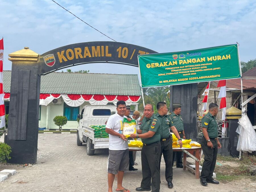 Batuud Koramil 10/TM, Pelda Dedi Antoni Hasibuan, menegaskan TNI berperan aktif dalam pendampingan dan pengawasan distribusi beras murah. “Kami hadir memastikan beras Bulog benar-benar sampai kepada masyarakat yang berhak dan sesuai kualitas. Harapannya, program ini bisa menekan harga beras di pasaran,” ujar Pelda Dedi.