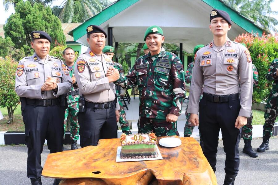Kejutan tersebut berupa kue ulang tahun yang diserahkan langsung oleh jajaran Polres sebagai bentuk apresiasi dan penghormatan terhadap dedikasi TNI dalam menjaga kedaulatan serta keamanan bangsa.