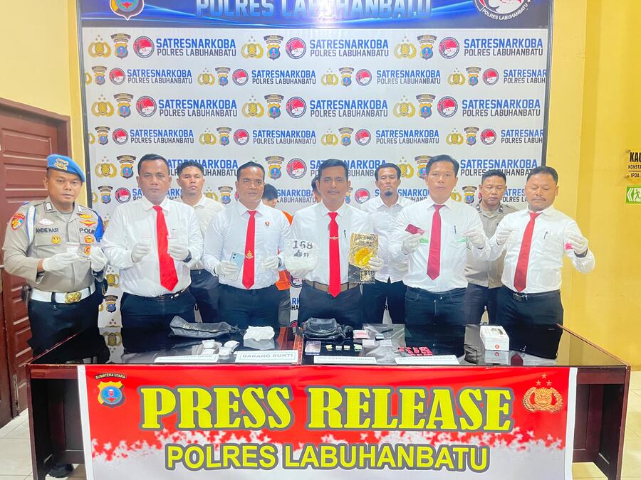 Satuan Reserse Narkoba Polres Labuhanbatu saat melakukan Press release di Mapolres Labuhanbatu, Senin (15/09/2025)