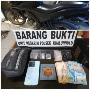 Tim juga mengamankan timbangan elektrik, plastik klip kosong, uang tunai Rp205.000, telepon genggam, dompet, tas sandang, dan satu unit sepeda motor yang dibawa ke lokasi.