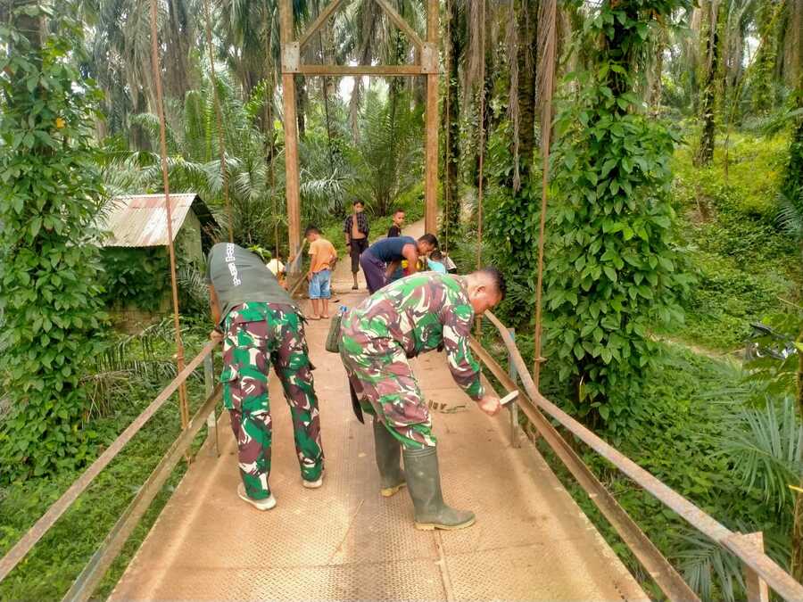AKARRUMPUT.COM, Labusel – TNI melalui Koramil 12/LP terus mempercepat pembangunan jembatan gantung di Kecamatan Sungai Kanan, Kabupaten Labuhanbatu Selatan, pada Minggu (05/04/2026). Langkah ini dilakukan untuk menjawab kebutuhan akses transportasi masyarakat di wilayah tersebut.