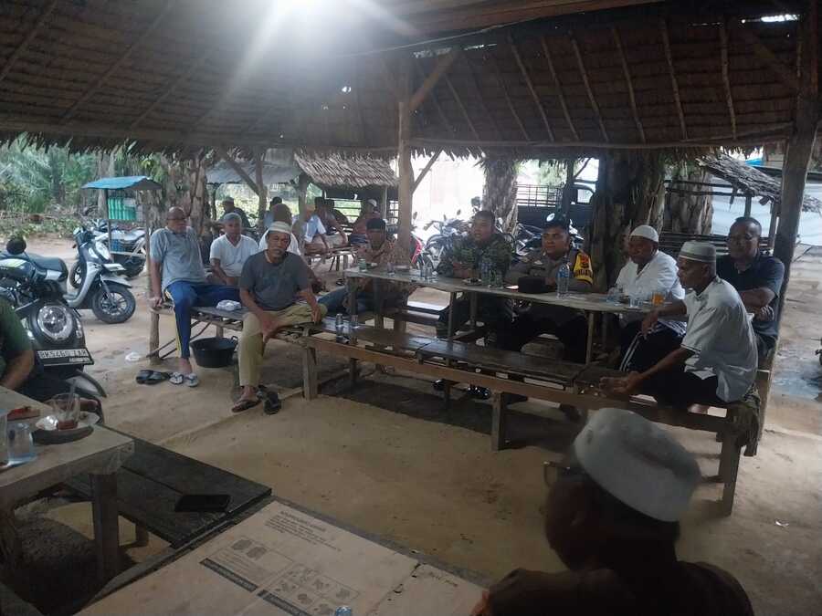 Babinsa Koramil 12/Lap Serda Edy Harahap menghadiri rapat bersama warga di Warung Kopi milik Amrin Siregar, Lingkungan Labuhan Seberang, untuk membahas solusi terhadap masalah tersebut.